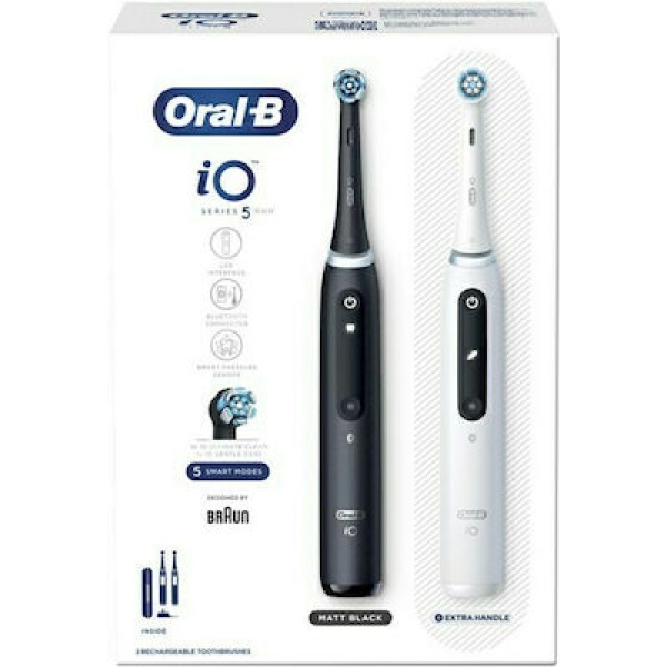 Oral-B IO Series 5 Duo Pack Ηλεκτρική Οδοντόβουρτσα με Αισθητήρα Πίεσης και Θήκη Ταξιδίου Black & White