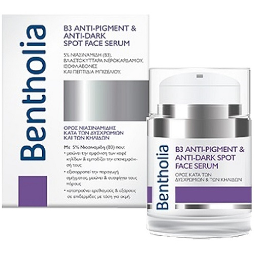 Ορός προσώπου με Νιασιναμίδη της Bentholia. Χάρη στη σύνθεσή του ο ορός απορροφάται γρήγορα και εισχωρεί βαθύτερα στην επιδερμίδα σε σχέση με τις κρέμες προσώπου, παρέχοντας λεύκανση και μειώνοντας τις πανάδες.