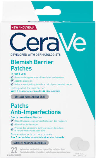 Τα αυτοκόλλητα επιθέματα CeraVe Blemish Barrier Patches είναι τα μόνα υδροκολλοειδή επιθέματα με 3 απαραίτητα ceramides και νιασιναμίδη, αναπτυγμένα σε συνεργασία με δερματολόγους για να μειώνουν τις ατέλειες σε 3 ώρες, να καταπραΰνουν το δέρμα και να μειώνουν την ερυθρότητα, ενώ παράλληλα προστατεύουν τον δερματικό φραγμό χωρίς να αφήνουν σημάδια.
