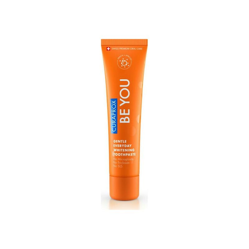Η Curaprox Be You Peach & Apricot Whitening Toothpaste είναι μια καθημερινή οδοντόκρεμα με φρουτένια γεύση από ροδάκινο και βερίκοκο, συνδυασμένα με νότες φρέσκιας μενθόλης για καθημερινή στοματική υγιεινή και δροσερή αναπνοή.