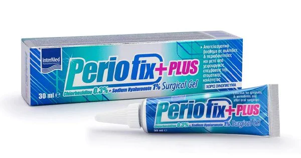Το Periofix Plus Surgical Gel με χλωρεξιδίνη 0.30% & υαλουρονικό νάτριο 1% , αποτελεί ειδικά σχεδιασμένη στοματική γέλη τοπικής χρήσης που βοηθά στη διατήρηση της καλής υγείας των ούλων και του στοματικού βλεννογόνου όταν αυτή διαταράσσεται απο άφθες, ερεθισμούς, ουλίτιδα, περιοδοντίτιδα ή οδοντιατρικές επεμβάσεις.