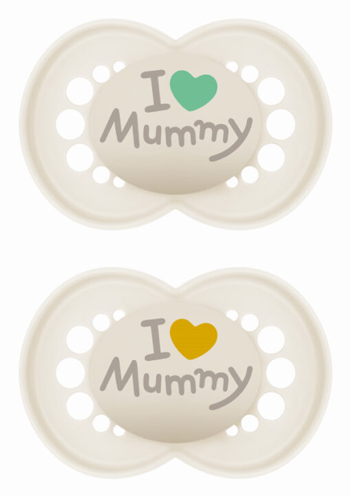 Mam Πιπίλες Σιλικόνης ”I Love Mummy” για 6-16 μηνών 2 τεμάχια μπεζ