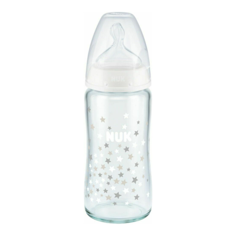NUK First Choice Plus Γυάλινο Μπιμπερό με Δείκτη Ελέγχου Θερμοκρασίας & Θηλή Σιλικόνης Μ 0-6m, 240ml