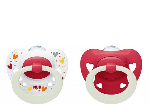 Οι πιπίλες NUK Signature Night οδηγούν τα μωρά γλυκά στην Ονειροχώρα. Χάρη στο ασφαλές για τα μωρά υλικό τους που φωσφορίζει, οι πιπίλες εκπέμπουν μια απαλή λάμψη στο σκοτάδι και έτσι μπορούν να εντοπιστούν γρήγορα και εύκολα τη νύχτα. Είναι σχεδιασμένη με πρότυπο το μητρικό στήθος κατά το θηλασμό κι έτσι υποστηρίζει την υγιή στοματική ανάπτυξη. Διότι έχει αποδειχτεί: η φυσική θηλαστική κίνηση όχι μόνο διασφαλίζει την πρόσληψη τροφής, αλλά βοηθάει επίσης στην ανάπτυξη σημαντικών δεξιοτήτων, όπως ο σωστός τρόπος κατάποσης, μάσησης κι επίσης, αργότερα, ομιλίας. Η πιπίλα NUK Signature είναι τόσο επίπεδη, λεπτή και στενή που εφαρμόζει εξαιρετικά στα μικρά στοματάκια και αφήνει στη γλώσσα επαρκή χώρο για τις φυσικές θηλαστικές κινήσεις. Το 100% των ορθοδοντικών αναγνωρίζουν ότι αυτό είναι το σωστό σχήμα και επιβεβαιώνουν ότι οι πιπίλες NUK δεν προκαλούν στρέβλωση των δοντιών ή κακή σύγκλιση της γνάθου. Τώρα όμως, ή πάντα δημοφιλής πιπίλα NUK έχει και υπέροχη καινούρια εμφάνιση: το καμπυλωτό σχήμα της διάσημης ασπίδας-καρδιά γίνεται πιο μαλακό και ο χαριτωμένος κρίκος ανανεώνεται σε μια ακόμη πιο κομψή εκδοχή.