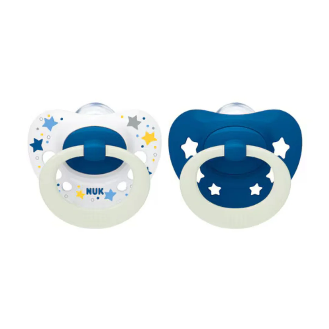 Nuk Signature Night Πιπίλα Σιλικόνης με Θήκη Μπλε-Άσπρο 0-6m 2 τεμάχια