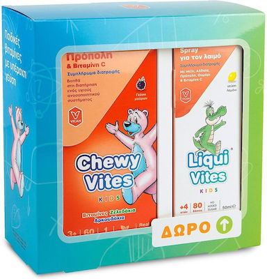 Vican Chewy Vites Kids Βιταμίνη Πρόπολη & Βιταμίνη C 60 Ζελεδάκια & Δώρο Liqui Vites Kids Σπρέι Για Τον Λαιμό για Ενίσχυση του Ανοσοποιητικού